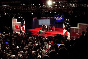 总统辩论委员会选出华盛顿大学主持比以往任何其他机构更多的总统和副总统辩论。美国总统大选辩论于1992年,2000年,2004年和2016 年在华盛顿大学运动中心举行。原计划在1996年举行总统大选,但由于候选人之间的日程安排困难,辩论被取消。该大学主持了共和党人 萨拉·佩林与民主党人 乔·拜登之间唯一的2008年副总统辩论,也就是2008年10月2日,在华盛顿大学运动中心。该大学于2016 年10月9日在共和党候选人唐纳德·特朗普与民主党候选人希拉里·克林顿之间举行了2016年第二次总统辩论。