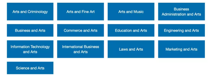同学们在修人文学本科时,还可以考虑搭配另外一个学科组成双学位。两个本科学位毕业仅需要4-5年时间。毕业时候即获得两个学位证书,让你职场上就业力加倍!