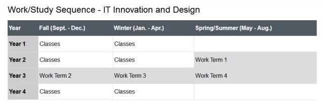 康尼斯托加学院的应届毕业生们,已经为将来就职的商业应用软件开发行业或其他领域做好了充分的准备。学生可享受的福利: 从学期开始前4个月起,学生们即可申请 实习学期 (详见下图) 的职位,直到所有学生都获得工作机会后结束,但前提是申请的学生必须满足至少可以连续全职工作12周的要求。