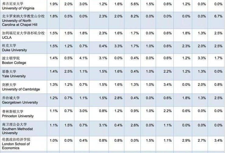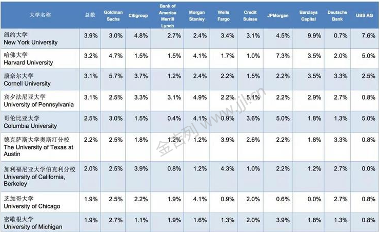 看看以下数据,了解投行中毕业生占比最多的top 20大学都有哪些吧!