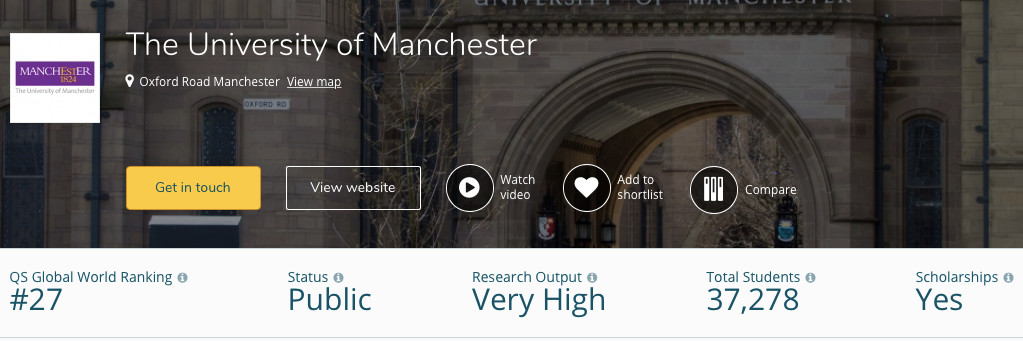 在今年最新发布的 2020年QS世界大学排名 中, 曼彻斯特大学排名世界第27名,英国第6名 。