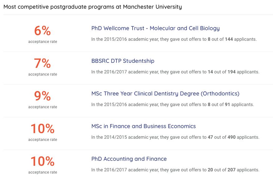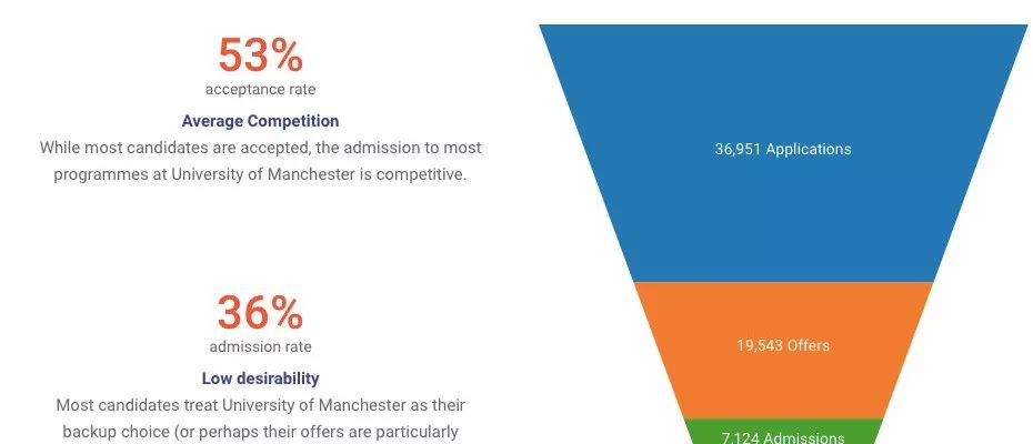 但是和KCL一样,曼大的不同专业之间,录取率有很大差异。 在热门专业中,曼大的录取成功率依然不高,竞争很激烈 。