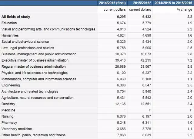 看看加拿大统计局统计的2015/2016学年各专业、各领域、各地区的详细学费分析,其中还有专门的国际生学费部分(文中的国际生学费),大家可以作为参考,这里面真的大有玄机,都瞅好了啊!