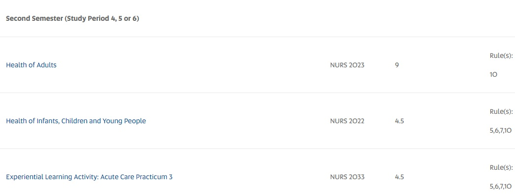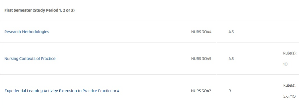 毕业生满足澳大利亚护理和助产士委员会注册的学术要求。注册要求由澳大利亚护理和助产士委员会确定。