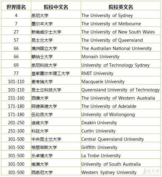 值得一提的是,去年未能入围的西澳大学、迪肯大学、中央昆士兰大学、格里菲斯大学成为本次榜单的新晋成员。