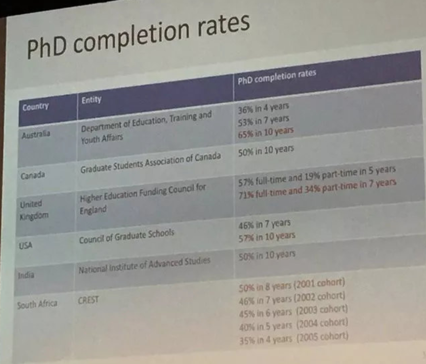 英国全日制教育博士7年毕业率仅46%,10年毕业率仅57%。