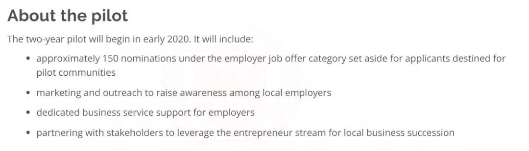 - 安省在2020年 即将推出全新地区移民试点项目Regional Immigration Pilot,第一批公开的3个社区有: Chatham-Kent、Cornwall以及Belleville/Quinte West。