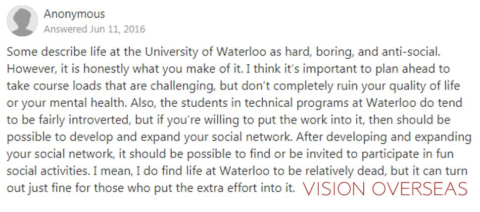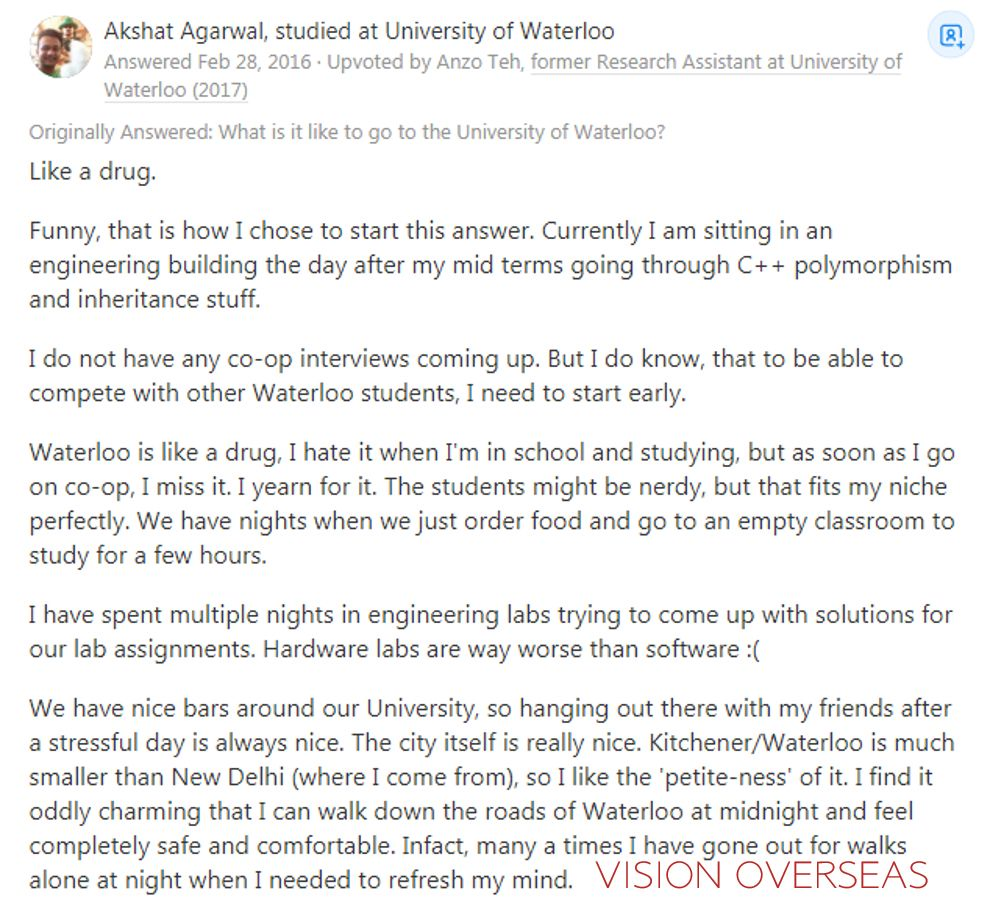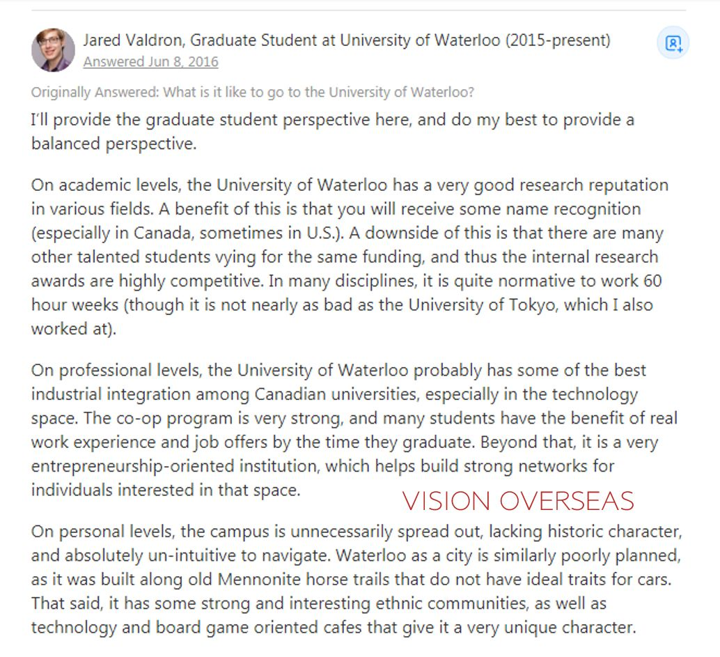 各位小伙伴一定想要了解真实的滑铁卢大学,那么多听一听本地人的评价和校友的意见总是没错的了。所以李老师找到了quora(美版知乎)上的干货,看看大家都是怎么评价滑铁卢大学的吧。