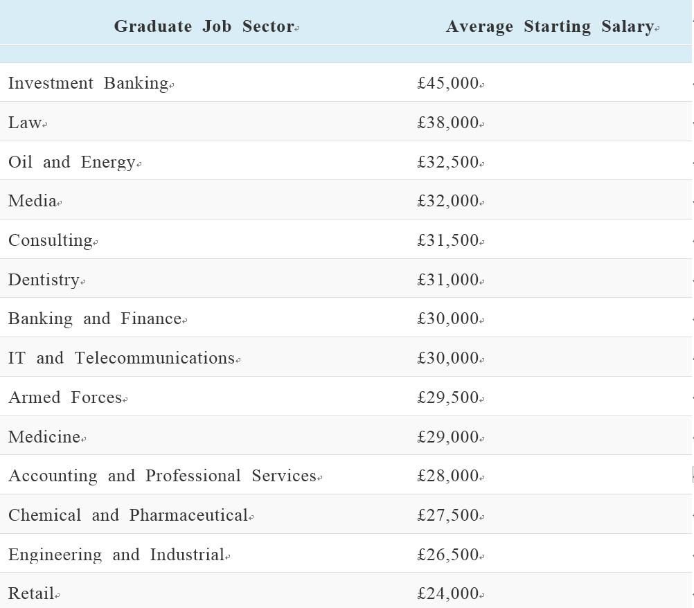 摘要 : 众所周知,英国工作以人际关系相对单纯简单,薪水高 (平均毕业起薪折合人民币 25万/年上下),工作经验保值性高,稳定及工作时长短为主要特征。特别是一些finance, accounting, engineering, IT, gas & oil, 快消, consulting 等领域竟开出将近30k/year的年薪。那么那些,决定回国的小伙伴们是不是也想看看自己学的专业在国内的平均收入呢,顺便是不是还要算算几年能把留学的钱赚回来呢 ? 以下就从高到低,排名了一些主要专业的国内及英国的平均起薪,赶快查阅起来。