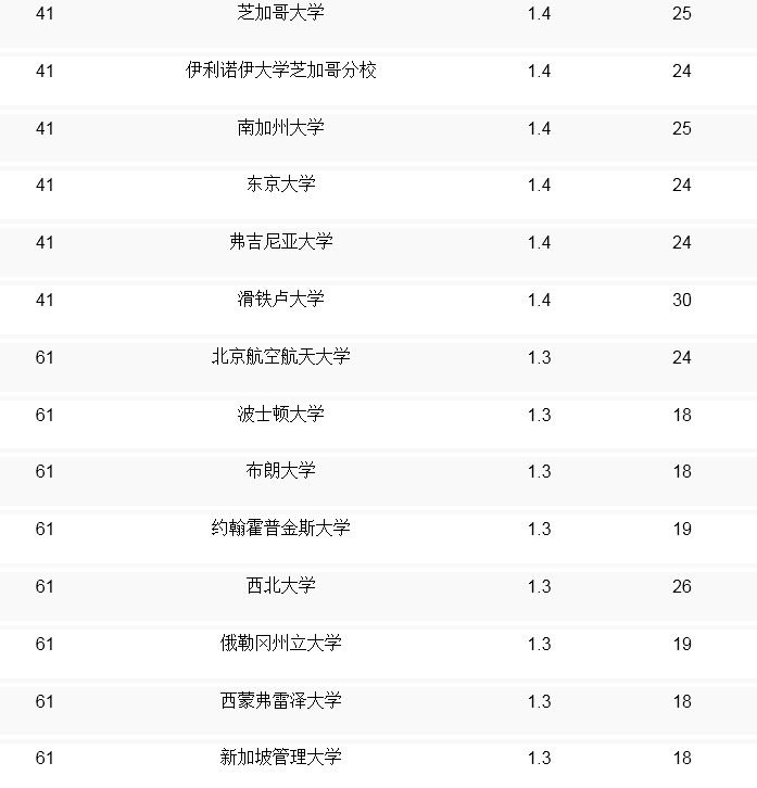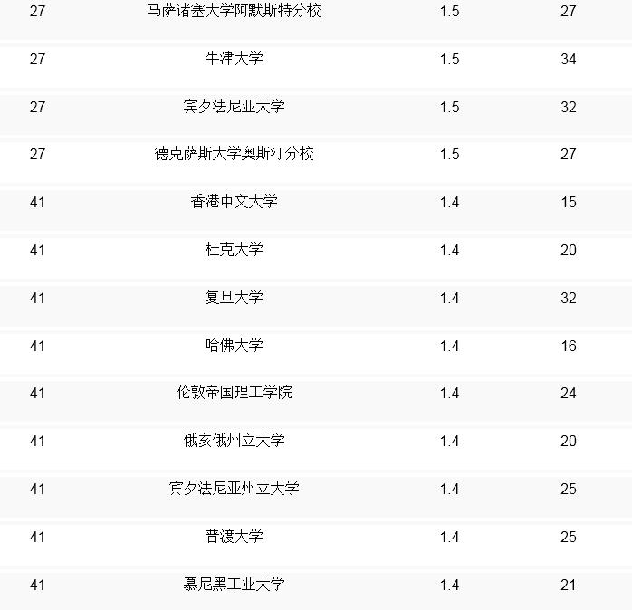美国大学依旧是主力,前30所学校中占据了一半以上,都是常年盘踞各大排名网站前列的名校,申请还是比较难的。