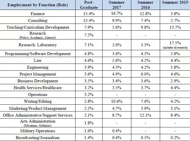 无独有偶,在耶鲁大学发布的校友去向调查报告中指出,大部分学生在具体的就业工作选择上,金融、咨询类工作最受毕业生的欢迎。