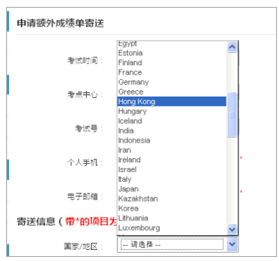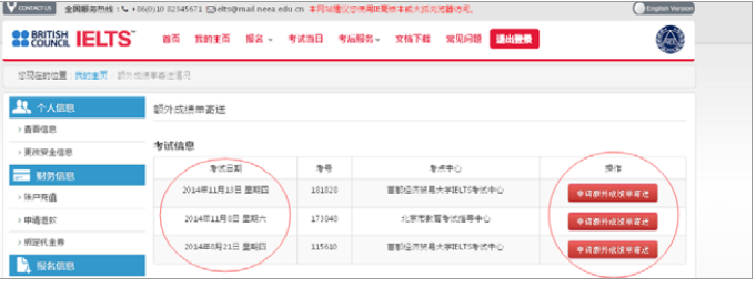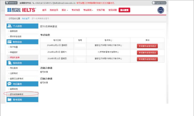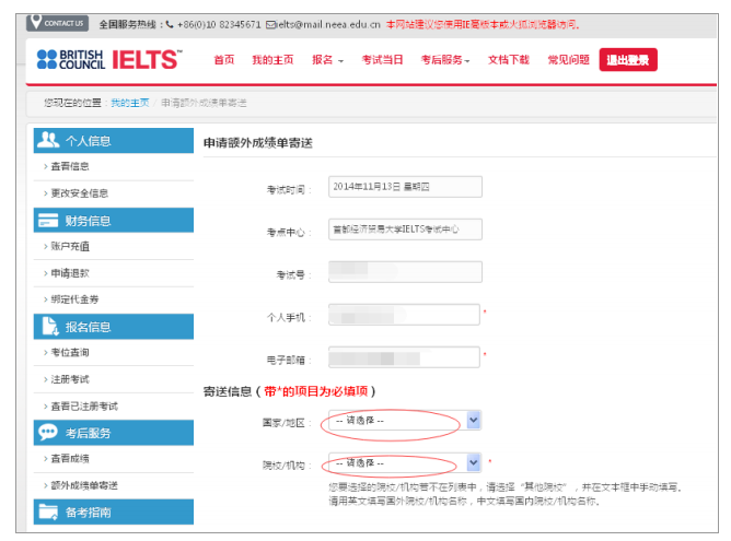 点击上图第二个红圈里相应雅思成绩单的“申请额外成绩单寄送”,则进入以下页面