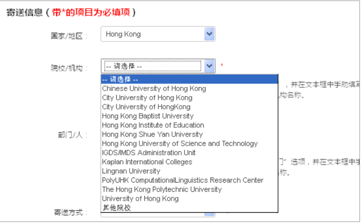 要送分给美国的大学,则使用“国家/地区”的下拉菜单,选择 Unite States