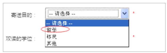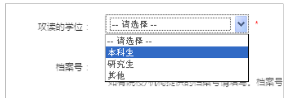 按照实际申请情况,在“攻读的学位”下拉菜单里选择
