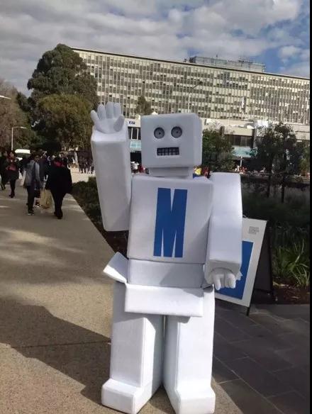 看看这位悠闲地坐在New Horizons大楼草地上晒太阳的朋友!没错,他就是我们蒙纳士的校园吉祥物——机器人Dayton,你可以在很多校园活动上看到他的身影。