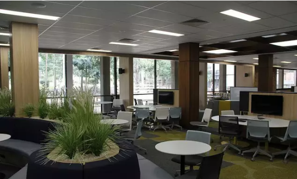 这一全新的自助学习空间宽敞明亮, 透过大窗户可以直接看到后院的绿树和草坪。 房间里有 符合人体工学原理的电脑桌椅,有圆桌和显示屏适合小组学习,还有沙发适合在学习之余放松小憩。该空间提供 WiFi 、热水和微波炉, 但是不提供电脑 ,你需自带电脑,当然也可以在图书馆二楼的Information Common 借。