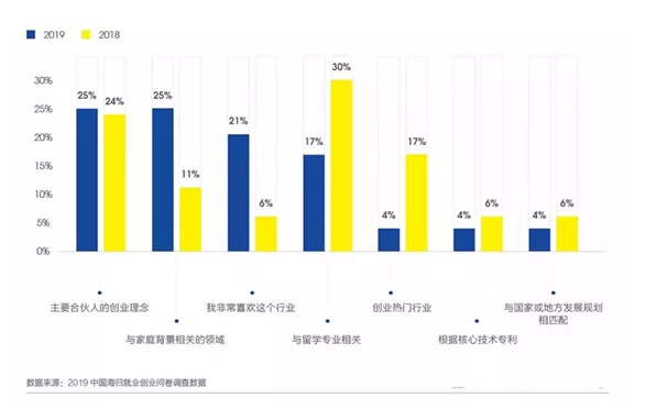 其次,兴趣因素在海归创业中变得尤为重要,“我非常喜欢这个领域”占比21%,较去年上涨15%。