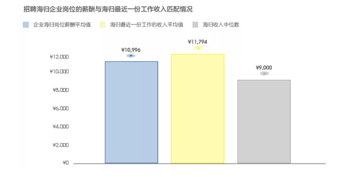 • 海归的薪资超过了当地的平均工资,但海归的就业供需匹配仍存在失衡状况。