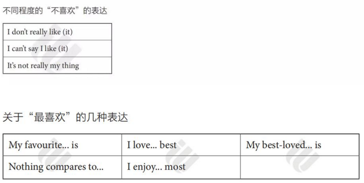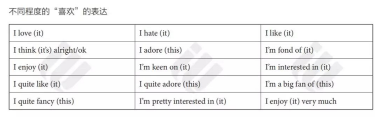 在这里给大家列一个简单的表格,我们就用“喜欢”“不喜欢”来说说怎么进行更好地表达——