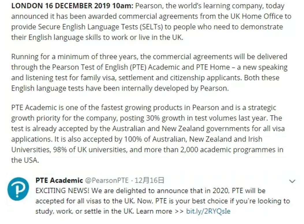 也就是说,2020年PTE可以用于申请各类英国签证!