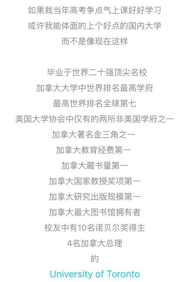 2 )如果高中平时成绩较好,高考发挥不佳,希望可以申请加拿大名校的学生,建议选择安省私立高中的名校班就读大学预科课程,结束一年的学分课程和英语课程后,基本上名校班的毕业生都可以申请到加拿大排名最高的几所大学就读。