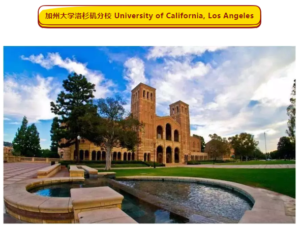 加州大学洛杉矶分校成立于1919年,位于美国加利福尼亚州洛杉矶市西木区,作为全美最大的公立学校之一,加州大学洛杉矶分校有着雄厚的研究资金,可供学校超过130个专业的教授、学者和学生以最顶尖的条件完成他们的研究和学习。
