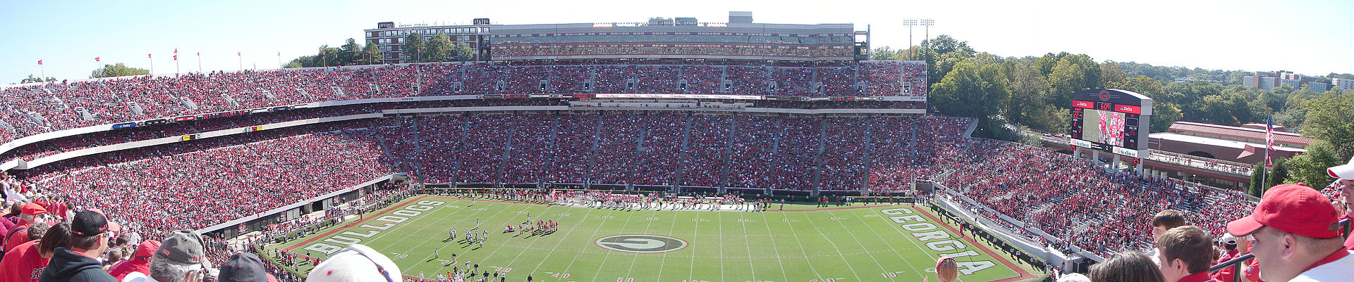 佐治亚大学属于NCAA成员, 热门运动项目包括:美式足球, 棒球和女子体操, 尤其是女子体操已获得十座全美冠军, 最近五年更是完成了五年霸(2005-2009)。该校更拥有一座全美第五大, 能容纳92,746人的Sanfor球场, 1996亚特兰大奥运会以该场地作为英式足球比赛球场。另外, 可容纳10,523人的Stegeman室内体育馆, 也同样被选中为1996年奥运的排球和韵律体操比赛指定场地。