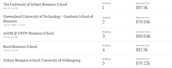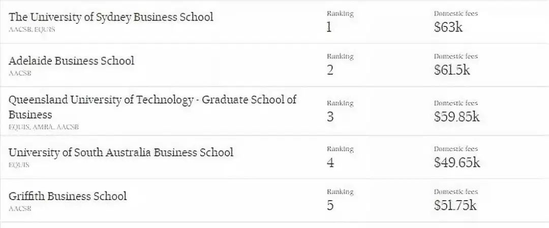 AFR BOSS澳洲MBA&EMBA排行