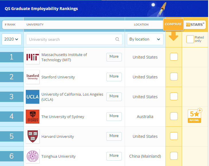 在QS 2020毕业生就业力排名中,