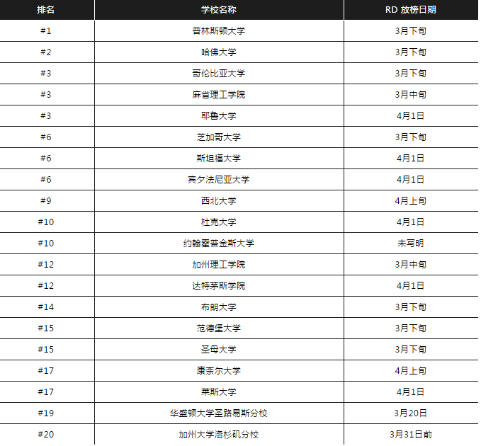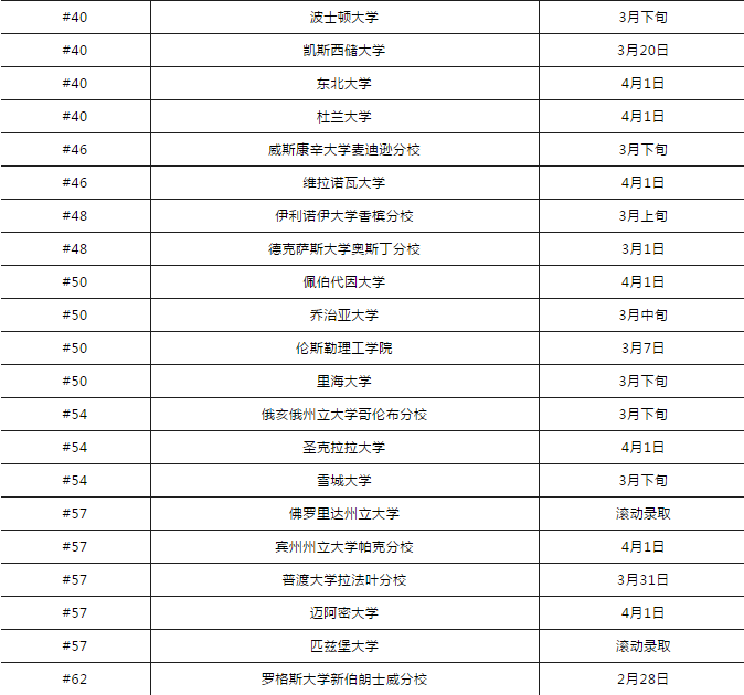 常规申请录取结果公布日期