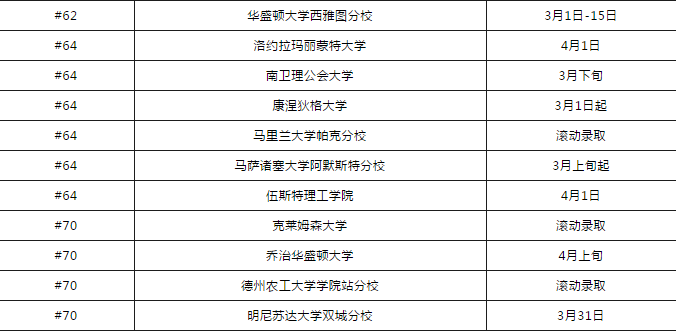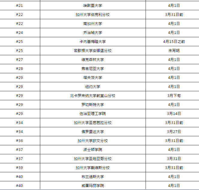 2020 U.S.News Top 70 综合性大学