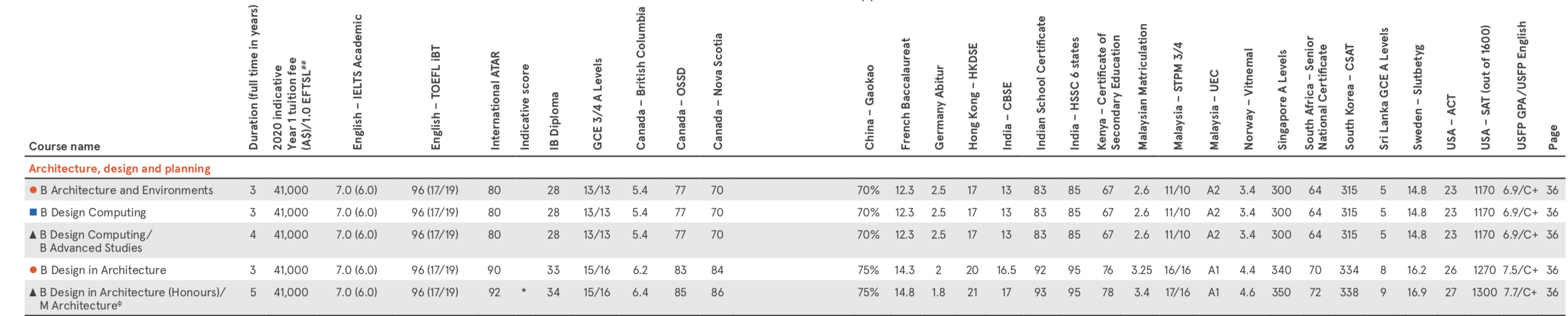 我们再看看悉尼大学建筑设计本科对于不同课程背景的入学要求