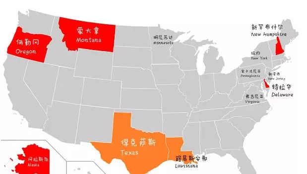 在中国,可能你很少听说有免税的省市,但是在美国却有好几个免税的州,它们分别是:阿拉斯加州(Alaska)、特拉华州(Delaware)、蒙大拿州(Montana)、新罕布什尔州(New Hampshire)和俄勒冈州(Oregon)。这5个州的州政府不对其任何商品征税,即免收销售税,为全国多数大型企业提供了最优质的政策环境。