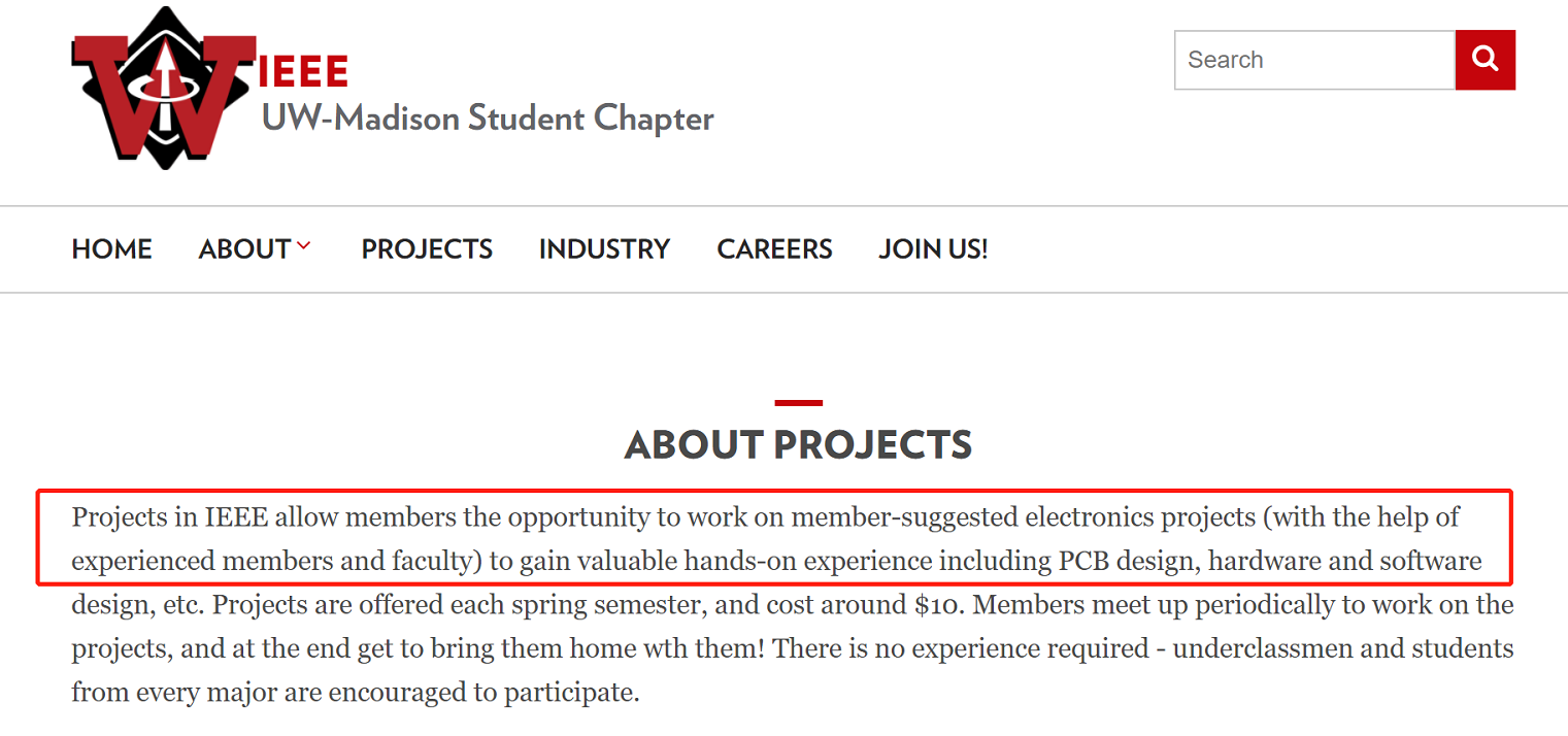 麦迪逊CS系每个春季给学生提供参与IEEE项目的机会,学生有机会可以同IEEE member一起做项目 做一些线路板设计,软件及硬件方面的设计。