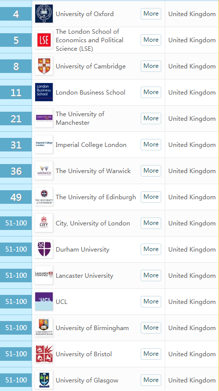 英国作为世界金融中心之一,金融业处于世界领先地位,同时也是英国支柱产业之一。英国的金融专业一直是世界闻名的老牌强势专业,从传统的金融经济、到投资、银行、风险管理,再到最前沿的房地产金融、低碳金融等二十多个细分的金融类专业。其中英国格拉斯哥大学GLASGOW University和伦敦城市大学Lonon CITY University金融类硕士专业开设最多,有20多种金融类课程。