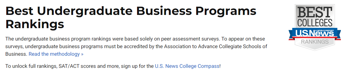 近日,U.S. News 对AACSB认可的504个本科商业课程的院长和高级教职员工进行了调查,评选出了2020年的全美本科商科项目排名。
