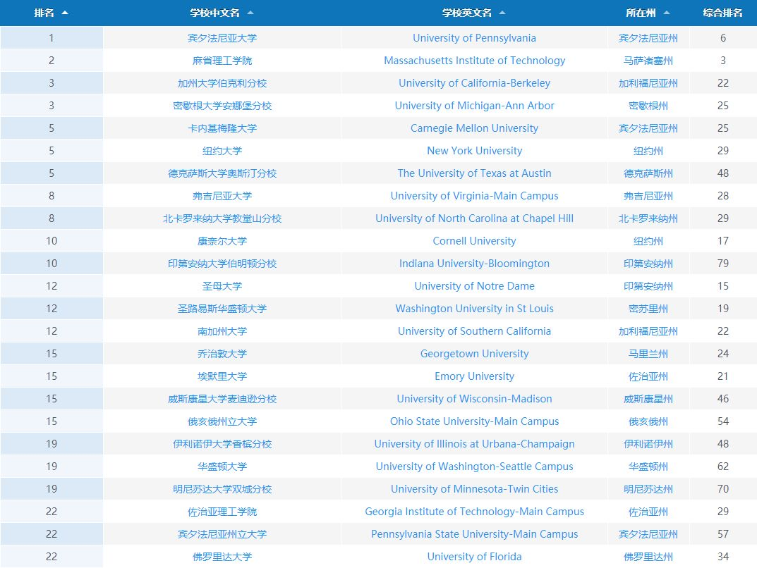 宾大沃顿商学院本科排名第一意料之中。 但麻省理工学院和卡耐基梅隆大学,原来不仅仅只是理工科全美顶尖,它们的商学院竟然也这么好。 MIT的商学院本科项目排名仅次于宾大沃顿。