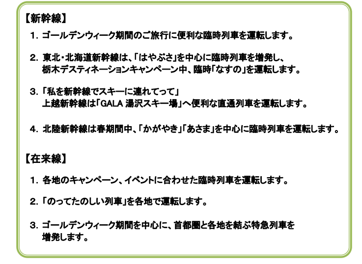 此外,访日游客专用的自由乘车券“ JR East Pass “将从 6 月 1 日起适用于区域内的 JR 巴士,使游客从新干线沿线至景区的二次交通更加便利。