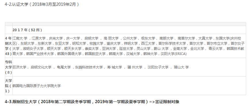以上就是韩国政府最新出具的认证大学名单,希望在院校选择上可以给予学生一定的参考,一方面,在不同认证学校,对学校的申请材料是有区别的,非法滞留率低于1%的院校,签证申请的材料相对简单;另一方面,在签证通过率上,认证大学的签证通过率也是比较高!