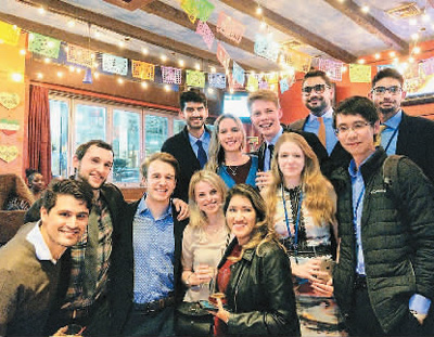 胡维逊 ( 右一 ) 在联合国实习的最后一天,与来自世界各地的实习生举办告别聚会。