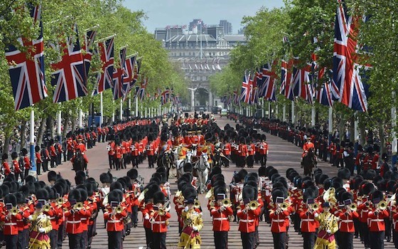 今年女王的官方生日庆典会在 6 月 9 日举办。女王之前都会侧骑在马上参加巡游庆典,从 1987 年以来,女王奶奶庆祝当天都是坐在马车车厢里跟大家挥手致意。巡游队伍中有超过 1000 名骑兵侍卫, 200 匹威风凛凛的马儿,还有来自 6 支军乐队的 200 多名演奏者,据说是世界上最华丽的阅兵式之一了。