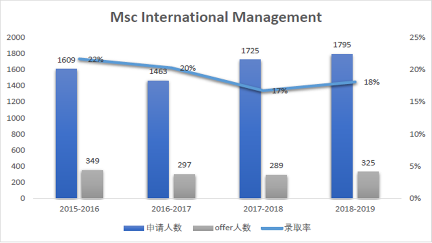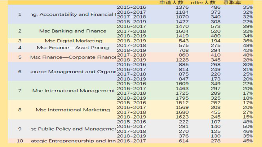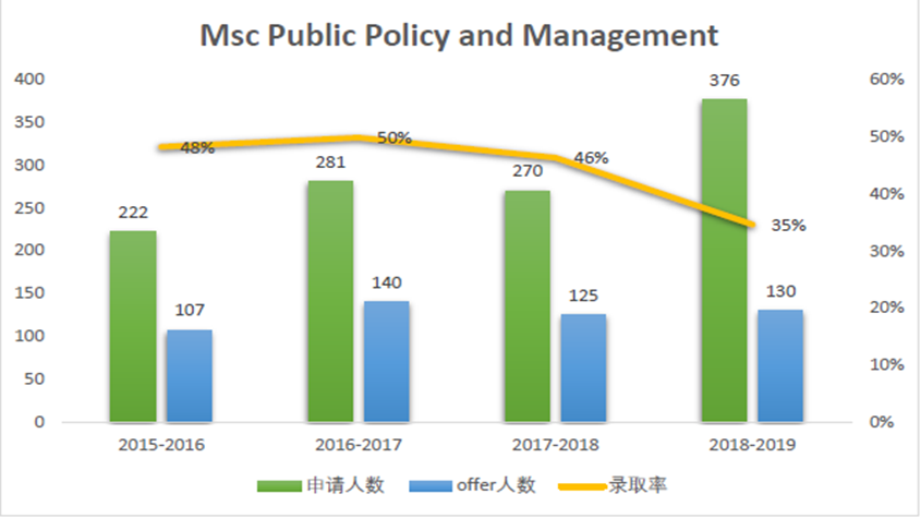 我们可以看出,这五个专业中只有 MscPublic Policy an Management相对冷门,每年申请人数都在逐年上涨,还有一些从15年留学还没有那么热门的时候,就已经达到了1500人申请了。