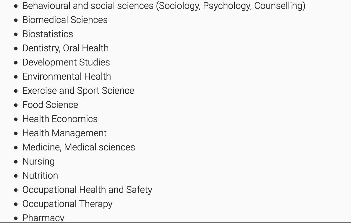 2,学士学位,非相关专业背景,但是有一年相关的工作经验或者通过rauate Certificate an/or a Grauate Diploma in Public Health衔接