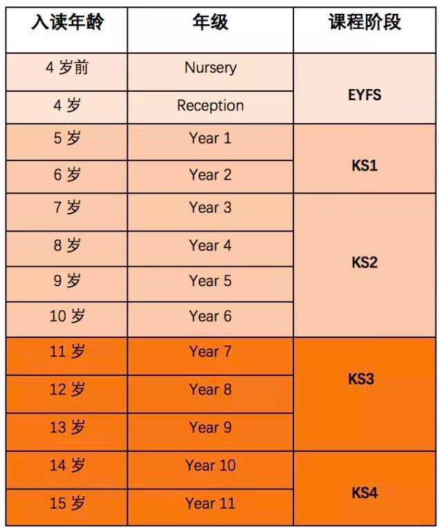 拿英国小学举例,就一共包含有6个年级和两个关键阶段。