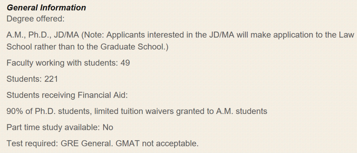 杜克大学经济学提供 AM硕士学位,PHD博士学位以及JD/MA 同法学院提供的联合学位, 经济学有49名教职工,221名学生,给90%的博士生提供奖学金,部分硕士提供奖学金。经济学硕士项目旨在为学生提供经济学的定量方法,并灵活地调整学位以适应他们未来的职业发展目标。该项目为学生提供该学科内一系列领域的全面指导,包括计算经济学,经济分析和金融经济学。该项目的毕业生擅长应用研究和财务分析,在金融领域就业市场非常具有竞争优势,并且为顶尖博士学位做好准备。 经济学只接受GRE,不接受GMAT。