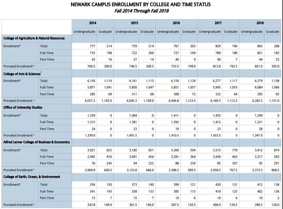 费城商业杂志在2019年区域机构排名中,在费城及周边地区30所知名高等教育机构中,UD排名第4。 UD有7个院系,除了地球、海洋与环境学院,其它6个院系均同时提供本、硕、博三种学位课程。