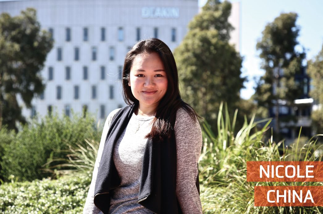 我叫 Nicole (邹悦), 来自中国成都。现在是迪肯大学学前教育硕士 Master of Teaching (Early Chilhoo) 在读学生。在迪肯大学留学的这一年半时间里,彻底改变了我对学习这件事的认识和态度。从迪肯语言中心(DUELI)到硕士课程,我感到了所有来自学校、来自各国同学的热情和帮助。这让我很快就融入到了当地的学习氛围中,紧张和未知的不安渐渐地消失了。来这里之前,我从未感受到一个大学能在方方面面为学生们考虑得如此周到,这种周到会让你不知不觉大胆开口,与人交流。