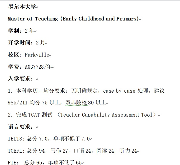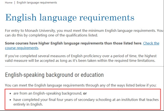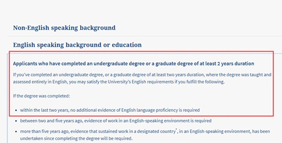 重点:从墨尔本大学官网,我们可以了解到如果你的本科或者硕士(两年制以上)是在英国国家学习的,完全是用英语教学的,并且是在完成学位的两年之内,是不用提供英语考试成绩的。当然,这个也取决于你的本科或者硕士的成绩,有一些同学,如果本科/硕士成绩不好,有很多挂科的话,估计这个英语成绩是豁免不了的。