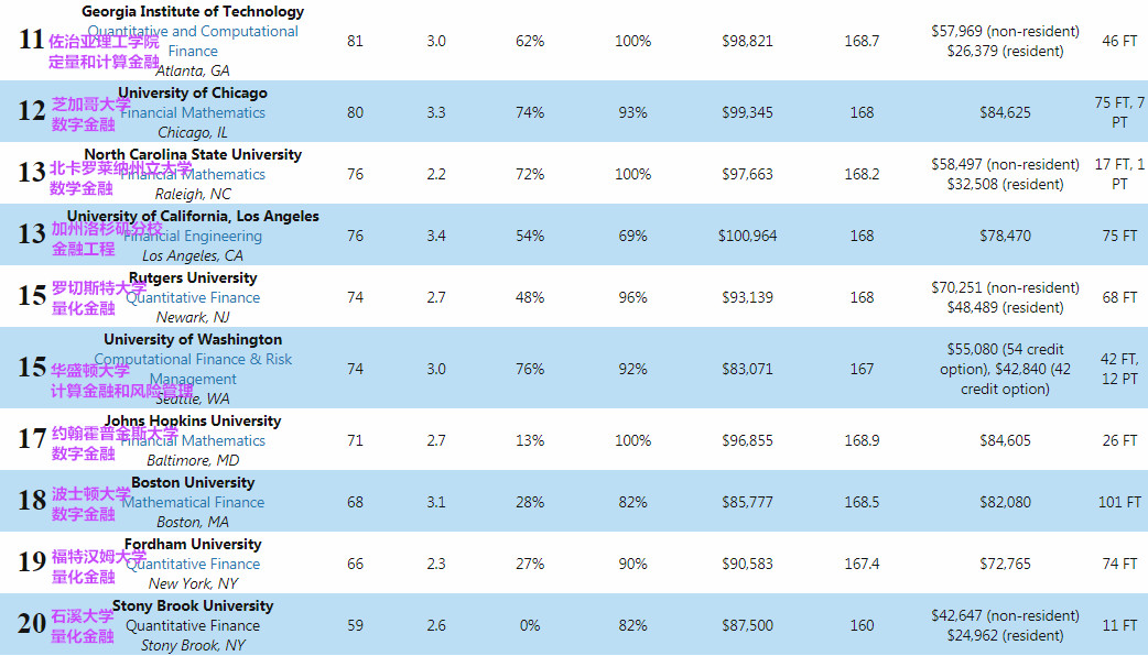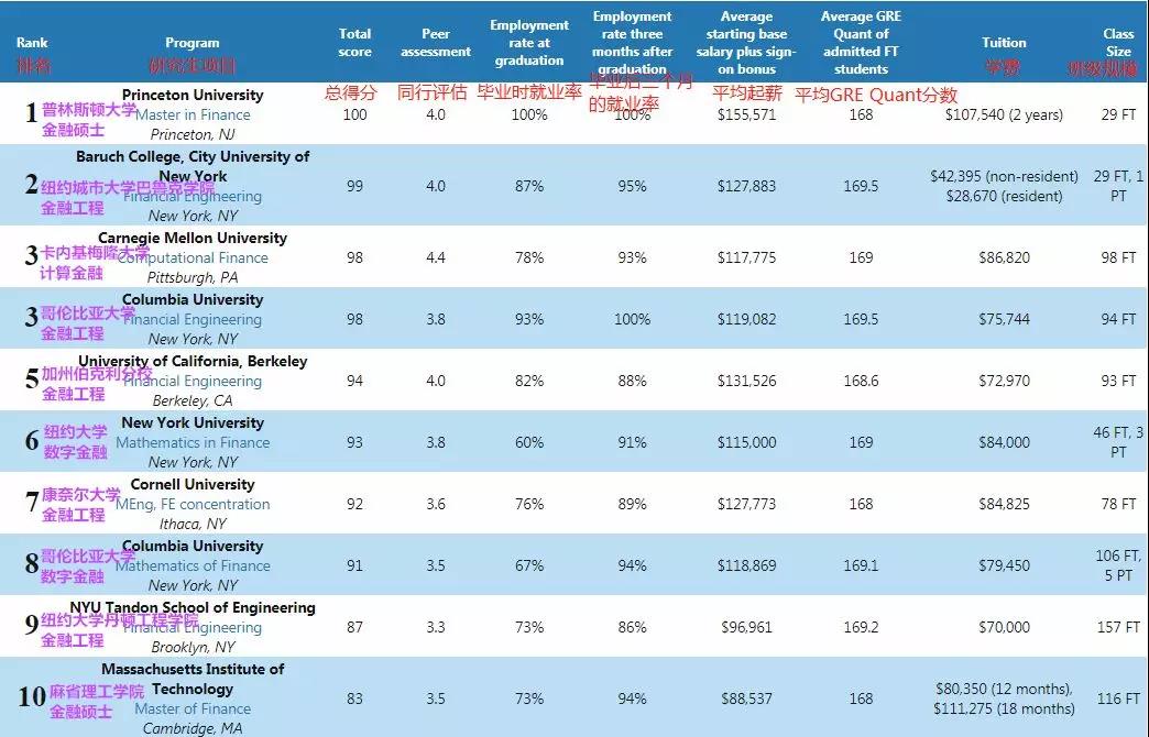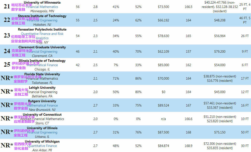 但即便如此,学校提供的金融工程硕士课程也分优劣,学校开设该课程不代表课程教育好,所以要申请的话,还得看看学校的教育水平如何。QuantNet专门对此统计了专业排名,如果想申请美国大学MFE,有这个排名就够了!