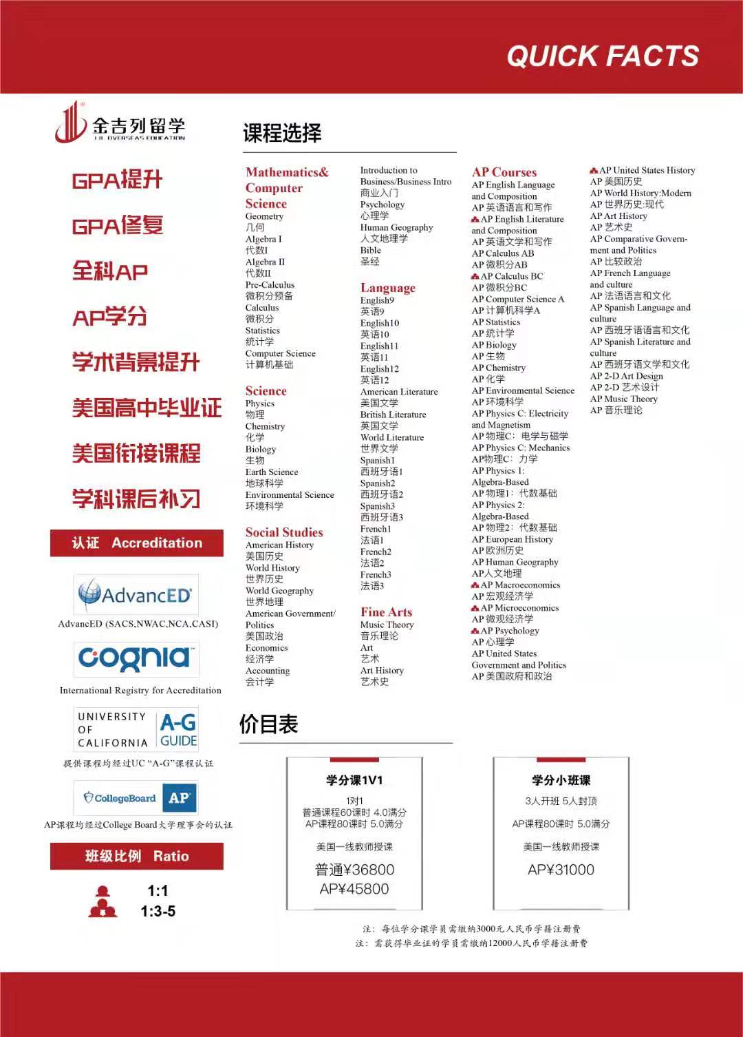 b. 美高/国际学校GPA成绩希望可以更好,AP课程的满分为5分,学生可通过学习AP课程有效的提高GPA成绩。有些学生成绩已经达到3.5以上,那么学习AP课程可以直接将GPA成绩拉过4,对于申请前30的学校可以说是致命的帮助!